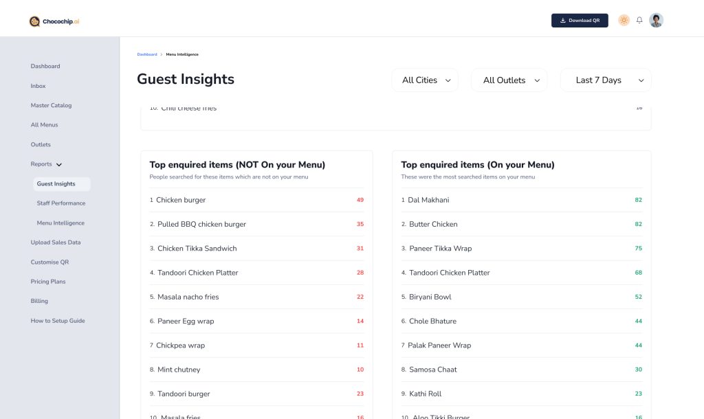 How Chocochip Reveals It: Chocochip’s conversational AI allows guests to ask natural language questions (e.g., “Do you have any vegan mains under $20?”). The AI logs every request it cannot fulfill successfully.